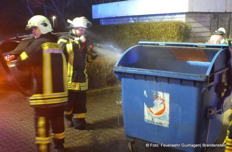 Die Feuerwehr Guxhagen wurde am frühen Neujahrsmorgen zu einem Müllcontainerbrand in die Dörnhagenerstraße von der Leitstelle alarmiert. Als die Wehr an der Einsatzstelle eintraf wurde diese ausgeleuchtet. Ein C - Rohr vom Staffellöschfahrzeug wurde vorgenommen und ein Trupp löschte den Container samt Inhalt ab. Beherzte Anwohner hatten bereits bevor die Wehr an der Brandstelle ankam eingegriffen und erste Löschversuche unternommen. Zur Brandursache können keine Angaben gemacht werden.
