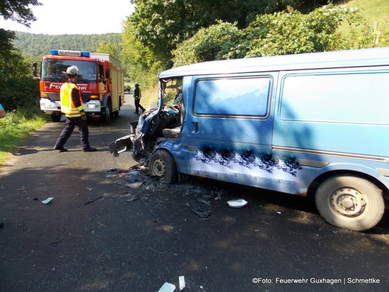 Zu einem schweren Verkehrsunfall wurden die Feuerwehren Guxhagen und Ellenberg am Samstagmorgen zwischen der Strecke Büchenwerra und Ellenberg alarmiert. Bei dem Unfall war ein Kleinbus und ein Traktor beteiligt. In dem Kleinbus wurde eine weibliche Person eingeklemmt und musste von der Feuerwehr mittels hydraulischen Rettungsgerät befreit werden. Schwer verletzt, aber zum Glück nicht lebensbedrohlich wurde die Frau in eine Klinik nach Kassel gebracht. Zum Unfallhergang können keine Angaben gemacht werden. Die Feuerwehr Ellenberg war mit 15 Einsatzkräften und zwei Fahrzeugen angerückt. Der Rüstwagen der Feuerwehr Melsungen war ebenfalls in Büchenwerra in Bereitschaft. Neben den Feuerwehren war eine Streife von der Polizeistation Melsungen, ein Notarzt und ein Rettugswagen vor Ort im Einsatz.