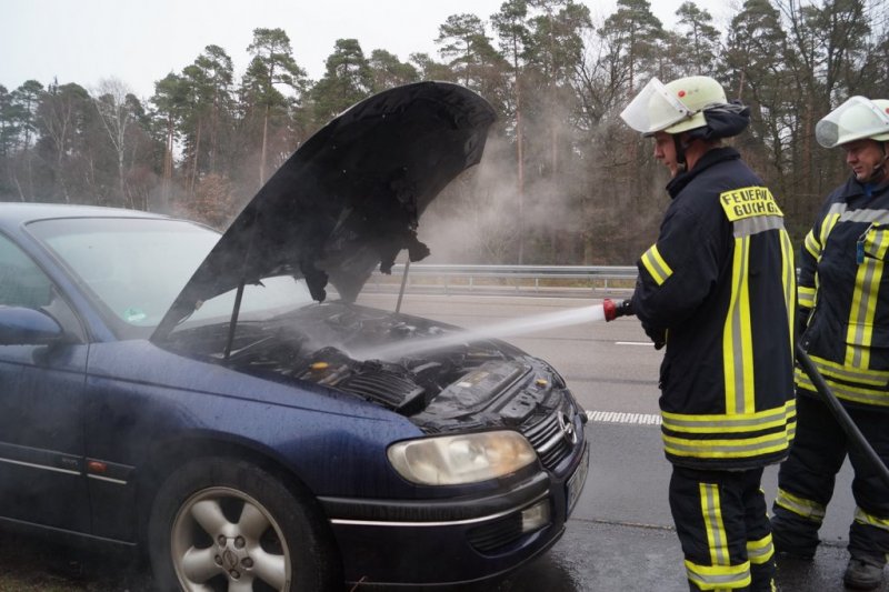 Die Feuerwehr Guxhagen wurde am Montagvormittag auf die A 7 zwischen den Anschlussstellen Guxhagen und Melsungen zu einem Pkw-Brand alarmiert. Bundespolizisten die zufällig an der Einsatzstelle vorbei kamen, hatten bereits vor Eintreffen der Wehr die Flammen mit einem bordeigenen Feuerlöscher gelöscht. Die Guxhagener Brandschützer mussten nur noch nachlöschen und mit der Wärmebildkamera nach versteckten Glutnestern suchen. Außerdem wurden ausgelaufene Betriebsmittel über ca. 100 Meter neutralisiert. Beamte der Polizeiautobahnstation Baunatal gehen bislang von einem technischen Defekt an dem Opel Omega aus.
