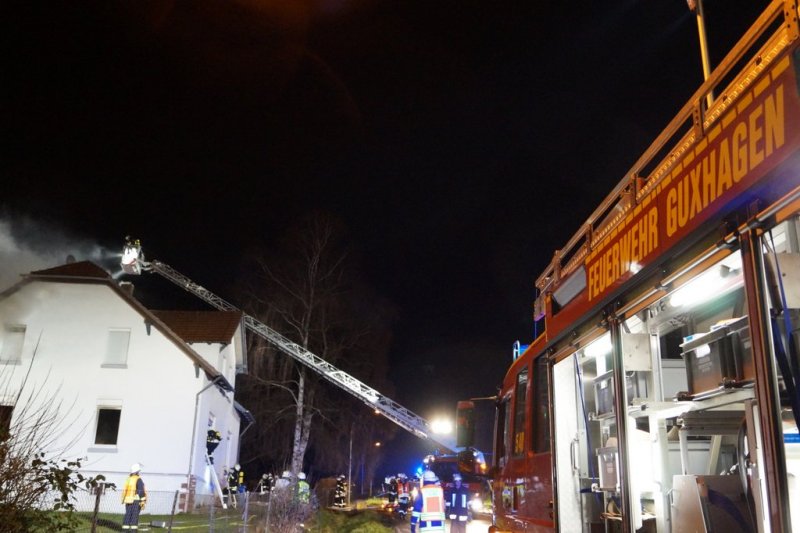 Nach eineinhalb Stunden war der Brand unter Kontrolle. Eine weitere Ausbreitung konnte zu diesem Zeitpunkt verhindert werden. Mit einer Wärmebildkamera wurde nach versteckten Gutnestern gesucht. Immer wieder loderte das Feuer im Obergeschoss auf. Um den Brand abschließend zu ersticken wurde ein Schaumangriff vorgenommen.