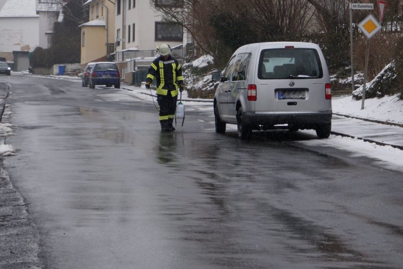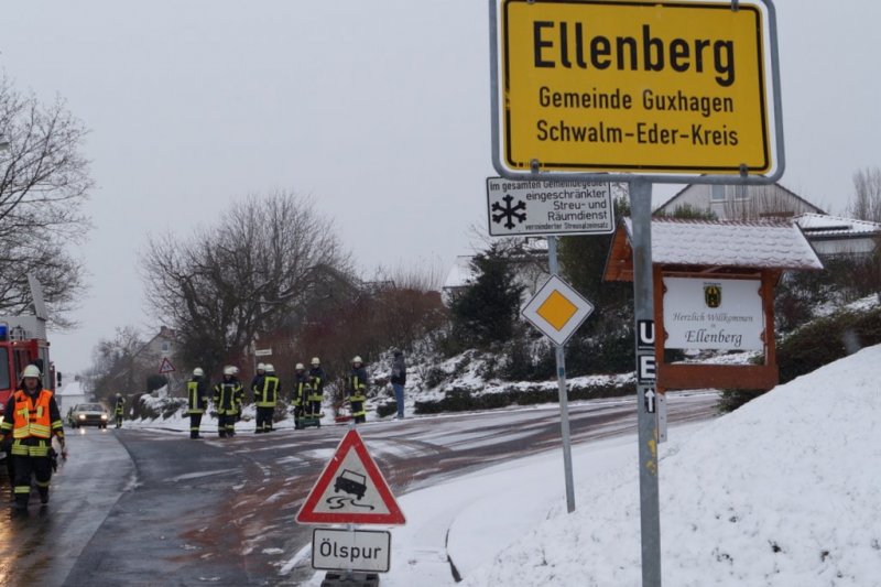 Eine ca. 300 Meter lange Dieselspur rief am Mittwochnachmittag die Feuerwehren Ellenberg und Guxhagen auf den Plan. Die schmierige Spur zog sich durch die Brunslarer Straße und den Schlagweg. Mit Bindemittel und Besen beseitigten die Kameraden die schmierige Ölspur. Abschließend wurden Warnschilder aufgestellt. Während der Abstreuarbeiten musste die Hauptdurchgangsstraße kurzzeitig gesperrt werden. Ein Verursacher konnte nicht festgestellt werden. Neben der Feuerwehr Guxhagen waren die Ellenberger Kameraden mit 10 Einsatzkräften angerückt.