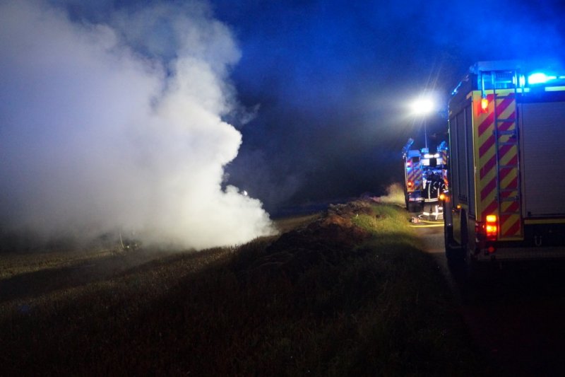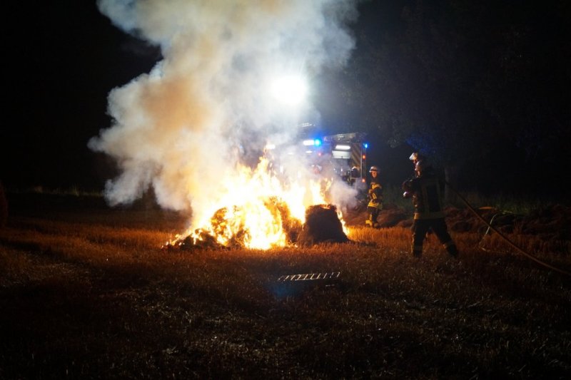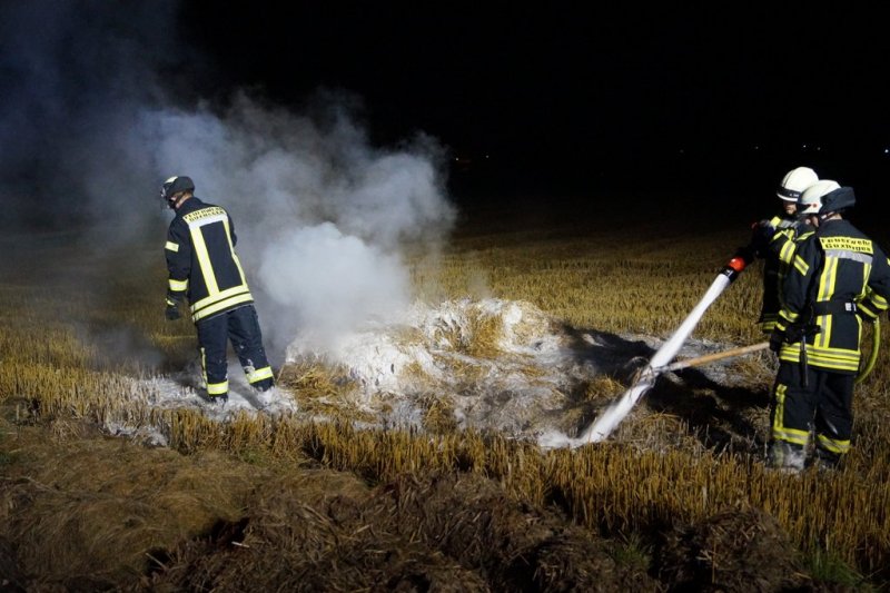 Am Wollröder Weg in Guxhagen ist am Sonntagmorgen auf einem Stoppelfeld ein Strohballen in Flammen aufgegangen. Mit einem Schaumangriff konnte der Ballen schnell abgelöscht werden. Mit der Hilfe von Dunghaken und Gabeln wurde der Strohballen auseinandergezogen und die immer wieder auflodernden Flammen mit dem Netzmittel erstickt.