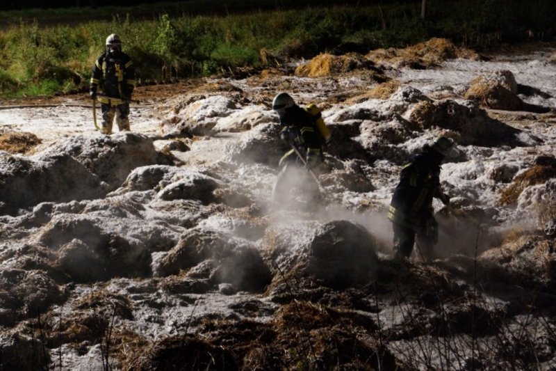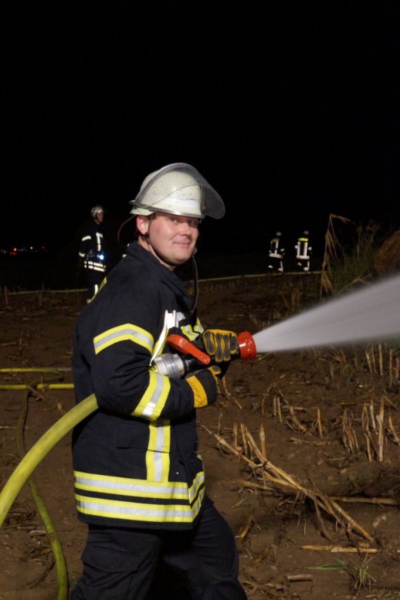 Alle Wehren der Gemeinde Guxhagen wurden am Donnerstagabend zu einen Strohballenbrand zum Aussiedlerhof in der Straße Zum Brunkelsberg alarmiert. Bis zu 150 Strohballen standen in Brand. Unterstützt werden wurden sie von ihren Melsunger Kameraden, die mit einem Tanklösch- und dem Flutlichtfahrzeug nach Guxhagen eilten. Später kam noch das THW (Homberg und Eschwege) mit zwei Lkw und zwei Radladern nach Guxhagen. Nur durch den schnellen und gut koordinierten Löscheinsatz der Feuerwehren konnte schlimmeres verhindert werden. Mit den Radladern zogen die Helfer des THW die Ballen auseinander. Anschließend wurde das teilweise immer noch brennende Heu auf die Lkw verladen und auf einem angrenzenden Feld abgekippt. So konnte die Feuerwehr mit Löschwasser und Schaumangriff die letzten Glutnester ersticken. Die Nachlöscharbeiten zogen sich bis zum Freitagmorgen 6 Uhr hin. Die Verpflegung übernahm für die eingesetzten Kräfte der DRK Ortsverein Körle/Guxhagen. Neben der Guxhagener Wehr waren alle Ortsteilwehren, Albshausen, Ellenberg, Grebenau und Wollrode vor Ort im Einsatz.