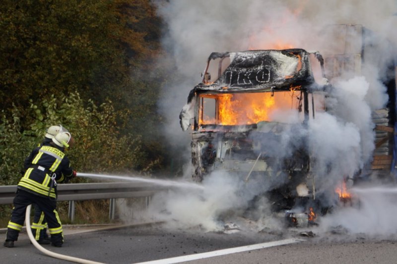 Zu einem Lkw-Brand wurde die Guxhagener Wehr auf die A 7 zwischen den Anschlussstellen Guxhagen und Melsungen alarmiert. Bei Ankuft an der Einsatzstelle stand die Zugmaschine in Vollbrand. Das Feuer wurde mit Trupps unter Pressluftatmern schnell gelöscht. Neben Wasser kam auch Netzmittel zum Einsatz. Restmengen Diesel aus dem aufgeplatzten Tank der Zugmaschine wurden abgepumpt. Nur durch das schnelle Eingreifen der Wehr, konnte ein übergreifen auf das 24 Tonnen geladenen Katzenstreu verhindert werden. Eine Palette wurde lediglich angekokelt.