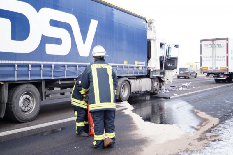 Zu einem Auffahrunfall zweier Lkw auf der A 7 zwischen den Anschlussstellen Guxhagen und dem Südkreuz Kassel wurde die Guxhagener Wehr alarmiert. Bei dem Unfall wurde der Motorbereich des auffahrenden Lkw stark beschädigt. Mehrere Liter Motoröl liefen aus und musste von den Feuerwehren aus Kassel und Guxhagen mittels Bindemittel abgestreut werden.