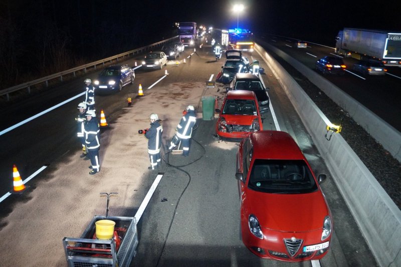 Zu einem Auffahrunfall von 4 Pkw auf der A 7 zwischen den Anschlussstellen Guxhagen und Melsungen wurde die Guxhagener Wehr alarmiert. Ausgelaufene Betriebsstoffe wurden mittels Bindemittel abgestreut, eingekehrt und aufgenommen. Die Batterien an den Fahrzeugen wurden abgeklemmt. Noch bei den Aufräumumgsarbeiten musste die Wehr zu einem weiteren Unfall. Mehr dazu im Einsatzbericht Nr. 3