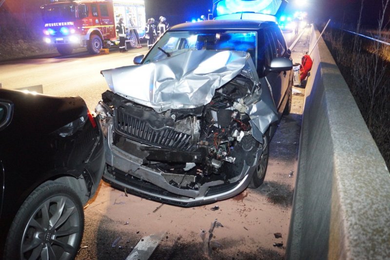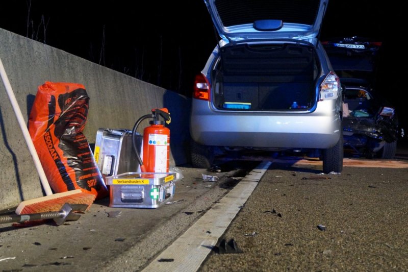 Zu einem weiteren Auffahrunfall am Stauende der A 7 zwischen den Anschlussstellen Guxhagen und Melsungen wurde die Guxhagener Wehr alarmiert. Nach Absicherung der Einsatzstelle kümmerte man sich mit um die Erstversorgung der Verletzten. Auch hier mussten ausgelaufene Betriebsstoffe abgestreut, eingekehrt und wieder aufgenommen werden. Die Batterien an den Fahrzeugen wurden ebenfalls abgeklemmt. Des Weiteren leuchtete man die Einsatzstelle aus, da ein Sachverständiger den Unfallhergang rekonstruierte.