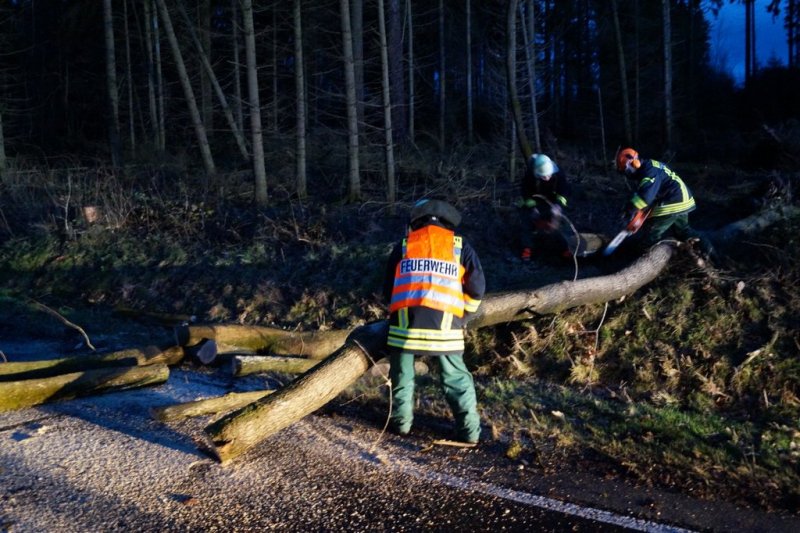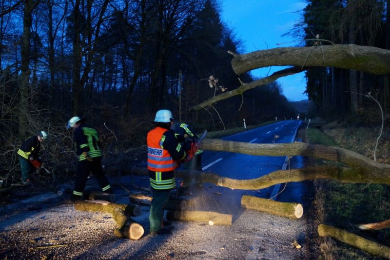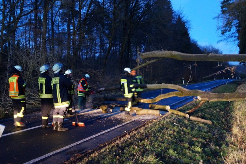 umgestürzter Baum auf Landstraße