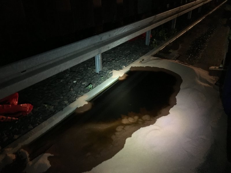 Beim eintreffen der Feuerwehr waren bereits ca. 650 Liter Diesel auf die Fahrbahn und in die Kanalisation gelaufen. Aufgrund des großen Risses im Tank konnten von der Feuerwehr nur ca. 100 Liter aufgefangen oder abgepumt werden. Ein zweiter LKW mit aufgerissenen Dieseltank wurde von der Feuerwehr Melsungen übernommen.