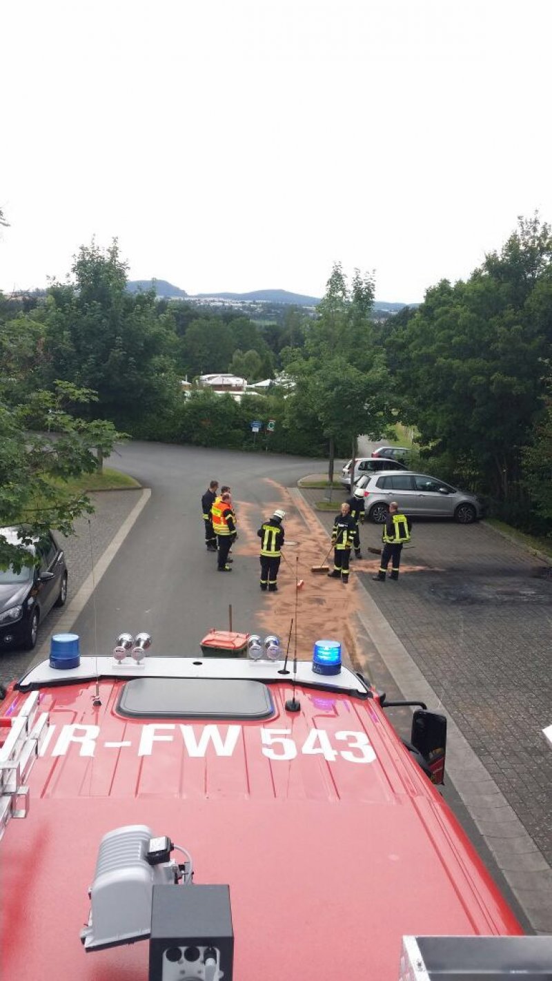 Dort war beim verladen eines PKW, Betriebsstoffe ausgelaufen und hatten sich auf eine Länge von ca. 5m ausgebreitet. Die Feuerwehr streute die ausgelaufenen Stoffe ab und nahm diese wieder auf. Im Anschluss wurden noch Warnschilder aufgestellt.