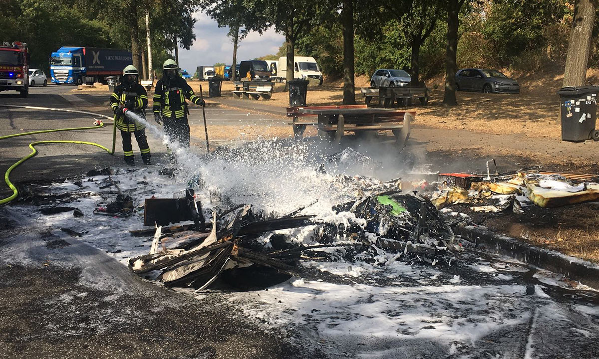 Bei Eintreffen war der Wohnwagen bereits voll ausgebrannt. Ein Trupp unter Atemschutz nahm ein C-Rohr mit Schaumaufsatz vor und löschte die Überreste des Wohnwagens ab.
