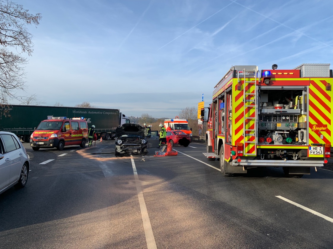 Insgesamt wurden 3 Personen leicht verletzt, wobei 2 davon ins Krankenhaus abtransportiert wurden. Die Fahrbahn war während der Maßnahmen vollgesperrt.