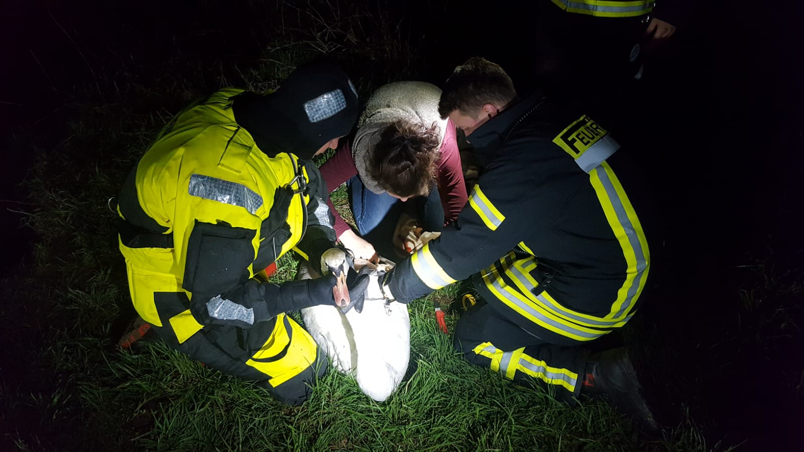 Nach Einschätzung der Helfer wäre der Schwan ohne die Hilfe vermutlich verendet.