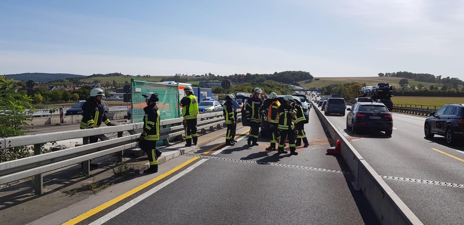 Die Guxhagener Einsatzkräfte sicherten die Einsatzstelle die sich auf der linken Spur befand ab und streuten ausgelaufene Betriebsstoffe ab.