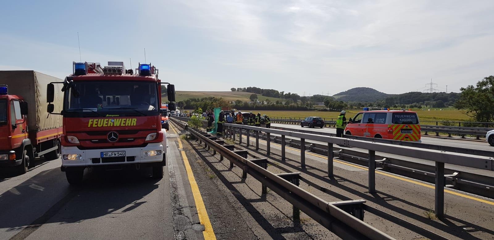 Am Freitagnachmittag wurde die Feuerwehr Guxhagen mit dem Alarmstichwort H Klemm 1 Y zu einem Verkehrsunfall mit eingeklemmter Person auf die A7 zwischen Guxhagen und Kassel alarmiert.