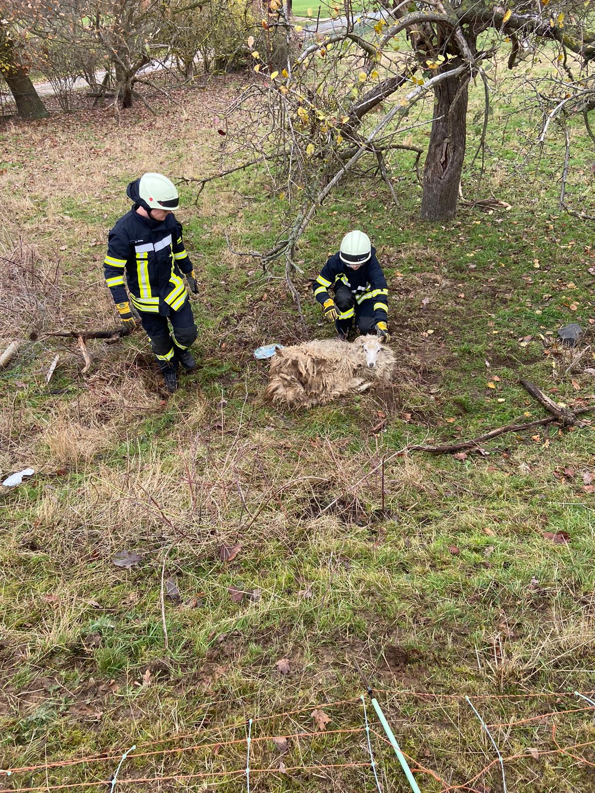 Beim Eintreffen der Einsatzkräfte stellte sich heraus das sich ein Schaf in Stacheldraht eingewickelt hatte und sich nicht mehr selbst aus seiner Zwangslage befreien konnte.