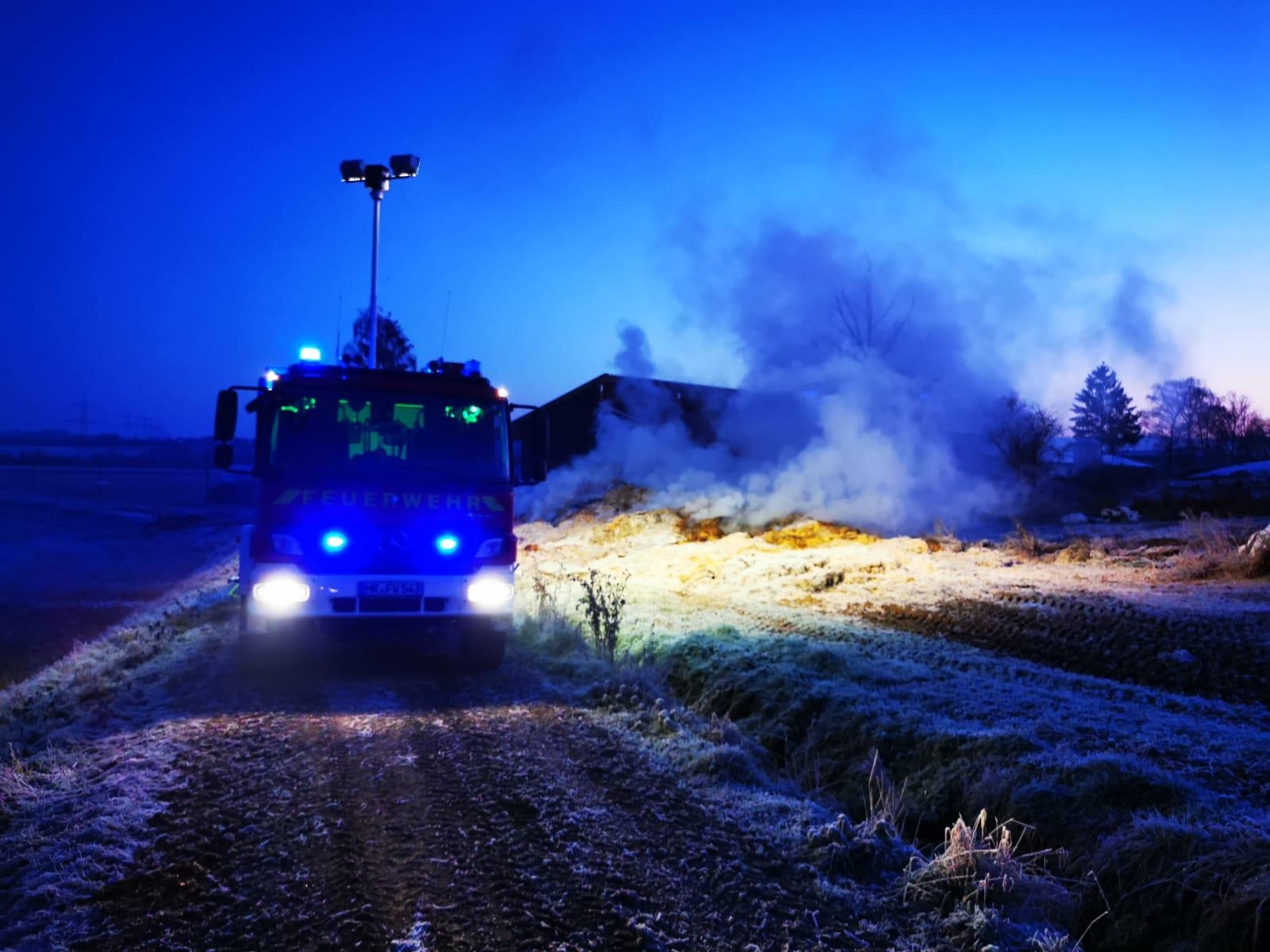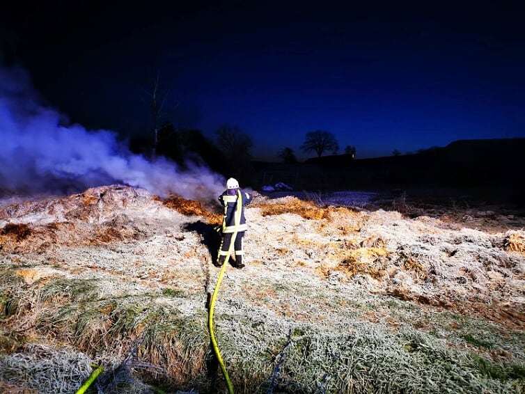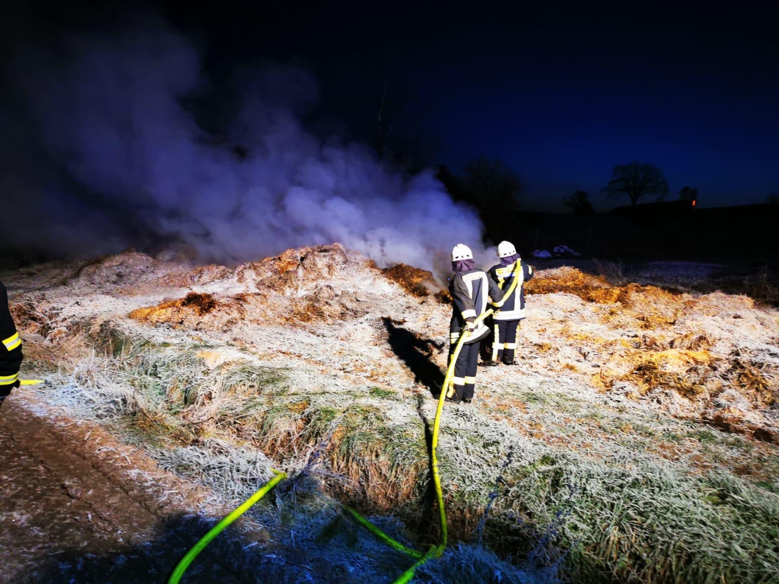Am frühen morgen wurde die Feuerwehr Guxhagen erneut zu Nachlöscharbeiten alarmiert. Autofahrer meldeten von der nahgelegenen Straße das auf den Stroh- und Heuhaufen wieder flammen und rauch zu sehen waren.